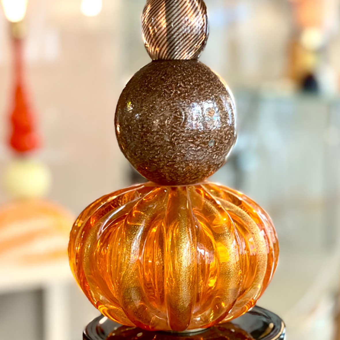 Silvia Finiels designs lamp sculptures from collectible glass, blown by the great Murano glass houses during the past century. Each lamp is a unique work of art.