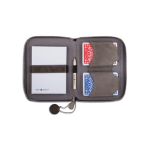 Deluxe set of playing cards in light gray tones. Hinting to bygone times, the leather zip case in the Vintage collection has been treated to showcase a vintage feel while enchanting with classic color combinations. LWG gold-certified leather.